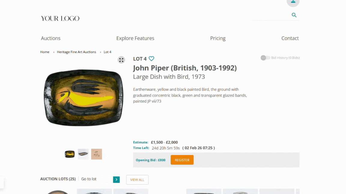 Built for auction houses, galleries, and specialist dealers running high-value, reputation-led auctions where trust, presentation, and control matter.